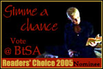 9th February 2005 *This Quintessence of Dust nominated at the Tales of the Slayer awards *Spiral of Chaos nominated at the Tales of the slayer awardsAnd the Vampire's kiss awards *"Axis of Love WEBSITE" was nominated at the Lost in Spike awards for best new site! *To Live Again Chap 4 added. * Captive Pleasures was nominated at the Lost in Spike awards *To Live Again is nominated at the 'Lost in Spike Awards' *PWP 'Captive Pleasures' added *This Quintessence of Dust won runner up short fic at the BloodAwards *Cornpone has been nominated at the Spuffy awards and at VKAwards!! AND Love is Blood awards& Lost in Spike Awards & The Love-bite awards *Chap 9 and Epilogue of 'A Fortune Told' added.. unbeta'd as yet. Recent updates *Revolution Of Tranquility Chapter 2 *Cornpone and the Bloodsuckers Chapter 3 *Cornpone and the Bloodsuckers added * Revolution of Tranquility added |